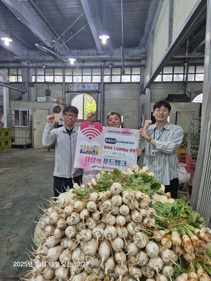 | ▲ 안산시는 지난 13일 안산시농수산물도매시장 내 중도매인인 반월농산으로부터 당일 출하된 알타리 1,000kg을 후원받았다 /사진제공=안산시 |
