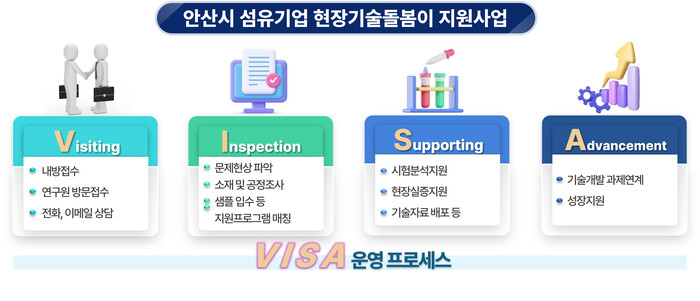 ‘현장기술돌봄이 지원사업’은 지난 2020년부터 안산시가 경기테크노파크 및 한국섬유소재연구원과 협력해 관내 섬유기업을 대상으로 ▲기술 애로 해소 ▲품질 개선 ▲신제품 개발 ▲시험·분석 등 현장 밀착형 기술지원을 무상 제공하는 사업이다.