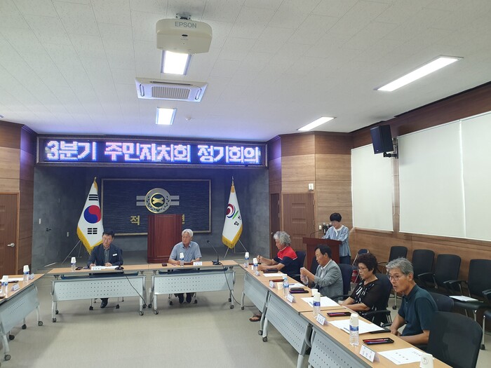 이날 회의에는 적중면장, 조형찬 자치회장을 비롯한 17명의 주민자치회 위원이 참석하여, 지역특화사업 프로그램 추진 방향 결정, 선진지 견학 계획 논의, 스마트도시 리빙랩 군민참여단 모집 안내 등 하반기 주민자치회 운영 전반에 대해 논의하는 시간을 가졌다.