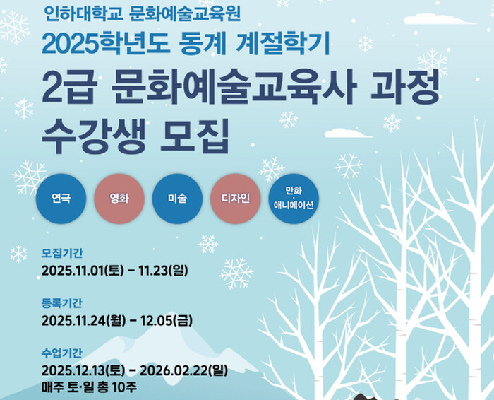 | 인하대 2025학년도 동계 계절학기 과정 문화예술교육사 2급 과정 수강생 모집 홍보 이미지 (사진=인하대) |