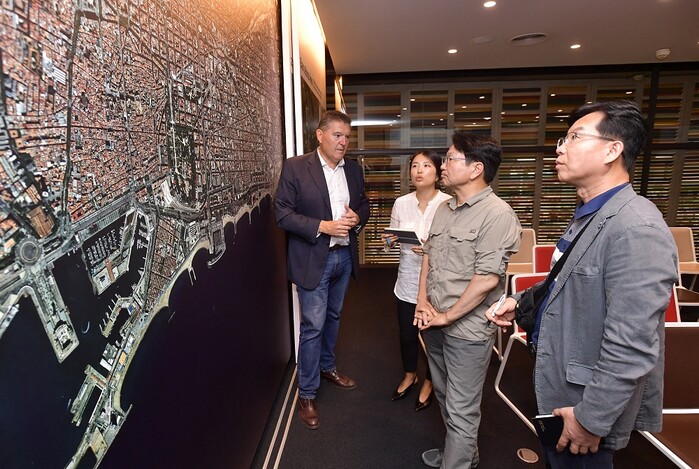 | ▲ 강기정 광주광역시장이 지난 7월 24일(현지시간) 스페인 바르셀로나 '22@ 혁신지구'를 방문해 파우 솔라니야(Paul solanilk) 바르셀로나 시청 국제경제진흥 국장으로부터 혁신지구에 대한 설명을 듣고 있다./광주광역시 제공 |
