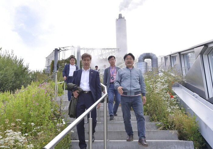 | ▲ 강기정 광주광역시장과 김병내 남구청장, 박병규 광산구청장 등 광주시대표단이 지난 7월 31일(현지시간) 오후 덴마크 코펜하겐 도심에 위치한 쓰레기 소각장 '아마게르 바케'를 방문, 폐기물 처리과정 등을 살펴본 뒤 건물 지붕에 조성된 스키 슬로프를 둘러보고 있다./광주광역시 제공 |