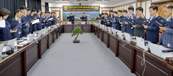 이번 청렴결의대회에는 군수를 비롯해 부군수, 국장 등 간부 공무원 31명이 참석한 가운데 청렴결의문을 낭독하고 청렴서약서를 작성하며 고위직들의 청렴 실천 의지를 표명했다.