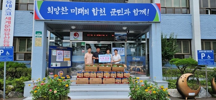 다가오는 중복(7.25.)을 맞이하여 경로당 어르신들의 시원한 여름나기를 위해 합천읍 청년회에서 수박 38통을 준비했으며, 각 경로당을 직접 찾아가 수박을 전달하고 어르신들의 건강과 안부를 살피는 시간도 가졌다.