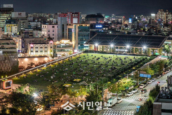 문화와 휴식이 공존하는 ‘국립아시아문화전당(ACC) 하늘마당’도 여름밤 도심 산책 코스에서 빼놓을 수 없는 명소다. 넓은 잔디와 감성적인 줄 조명(스트링 라이트)이 어우러져 피크닉과 야경을 동시에 즐기기에 안성맞춤이다. 올해는 잔디 생육을 위한 휴식 기간을 거쳐 지난 5월30일부터 개방됐다.