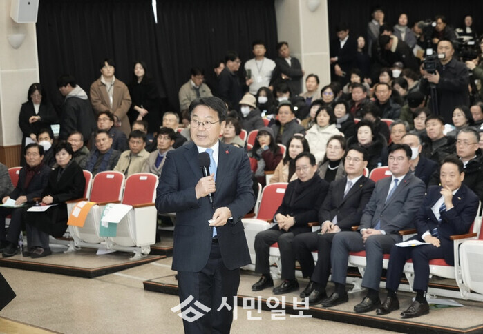 | ▲ 강기정 광주광역시장이 지난 19일 동구청 대회의실에서 열린 '광주전남 통합 광주 동구권역 합동공청회'에 참석해 광주전남 통합 추진 경과 및 향후 일정 등을 공유하고 있다. /광주광역시 제공 |