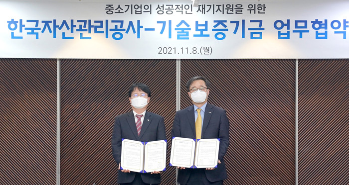 [부산=최성일 기자]기술보증기금(이사장 김종호, 이하 ‘기보’)과 한국자산관리공사(사장 직무대행 신흥식, 이하 ‘캠코’)는 8일(월) 부산시 문현동 소재 캠코 본사에서 ‘중소기업의 성공적인 재기지원을 위한 업무협약’을 체결했다고 밝혔다.