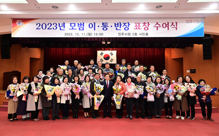 진주시는 11일 시청 시민홀에서 이.통.반장과 축하객 등 180여 명이 참석한 가운데 ‘2023년 모범 이.통.반장 표창 수여식’을 개최했다.