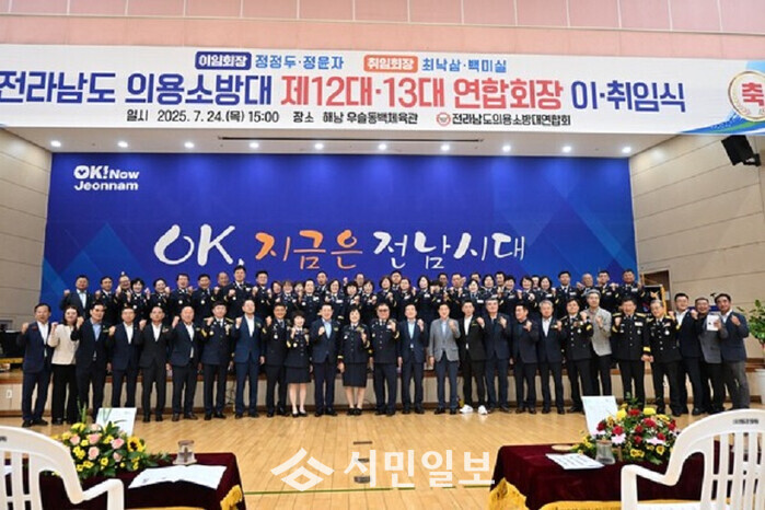 박춘천 해남소방서장은 “그동안 전라남도의 안전을 위해 온 힘을 다해 활동해 준 회장님과 대장님들께 감사 인사를 전한다”며 “취임하시는 회장님과 대장님들을 중심으로 의용소방연합회가 전남 도민의 생명과 재산 보호에 최선을 다해주길 바란다”고 전했다.