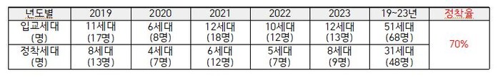 강진군 체류형귀농사관학교는 2019년부터 운영 중으로, 전남에서 구례에 이어 두 번째이다. 2019년부터 지난해까지 51세대가 입교해, 31세대가 정착해, 70%의 정착 률을 기록하고 있다.