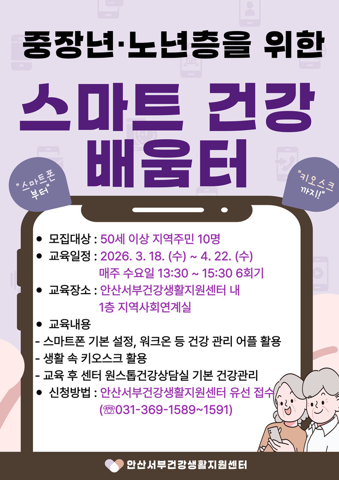 정영란 단원보건소장은 “이번 교육이 디지털 환경에 익숙하지 않은 시민들에게 실질적인 도움이 되길 바란다”며 “앞으로도 시민 건강 증진을 위한 다양한 프로그램을 지속적으로 운영하겠다”고 말했다.