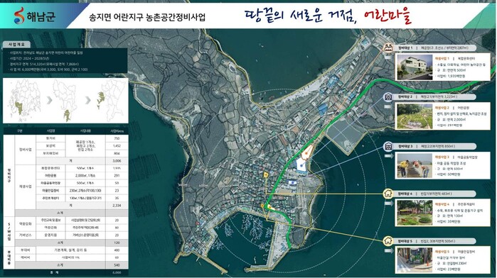 한편, 해남군은 현산면 월송지구 50억 원, 산이면 금호지구 127억 원 등 2개소가 농촌공간정비사업에 기존 선정돼 기본계획 수립 등 사업을 추진하고 있다.