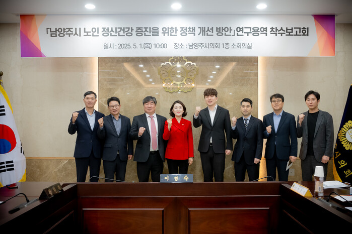 이경숙 복지환경위원장은 “남양주시의 노인 인구 비율은 18%로 초고령사회 진입을 앞두고 있으며, 이에 따른 노인 자살률과 정신건강 문제가 급증하고 있어 선제적이고 실효성 있는 정책 마련이 절실한 시점”이라고 강조하며, “참여 의원님들과 용역 업체 간 긴밀히 협력해 남양주시 노인 인구의 정신건강 증진을 위한 실질적이고 구체적인 정책 개선방안을 도출할 수 있도록 최선을 다하겠다”고 밝혔다.