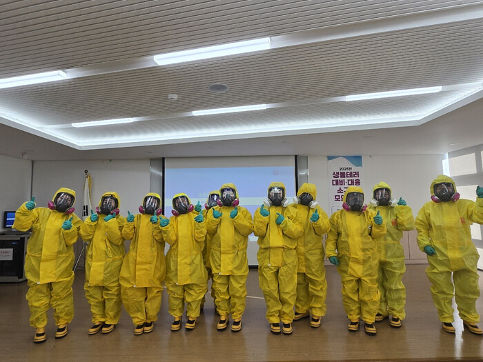 특히, 이번 훈련에서는 원시119 안전센터의 지원 아래 Level A 개인보호구 착·탈의 실습이 이뤄졌으며, 고위험 상황에서 초동대응요원의 안전 확보 절차를 전문적으로 교육했다.