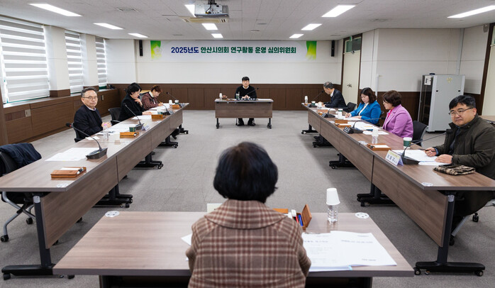 | ▲ 안산시의회가 최근 ‘2025년도 의회 연구활동 운영 심의위원회’를 개최하고 올해 활동하는 3개 의원 연구단체의 등록을 의결했다. 사진은 이날 심의위원회 중 한 장면 /사진제공=안산시의회 |