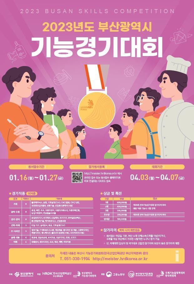 [부산=조병선 기자] 부산광역시 기능경기위원회는 「2023년 부산광역시 기능경기대회」(4.3.~4.7.)에 참가할 기능인을 모집한다고 밝혔다.