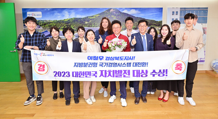 [안동=박병상 기자] 이철우 경북도지사(대한민국시도지사협의회장)는 지난 5일 (사)한국자치발전연구원과 한국지방자치학회 및 한국지역개발학회가 선정하는 ‘2023년 대한민국 자치발전 대상’을 수상했다.