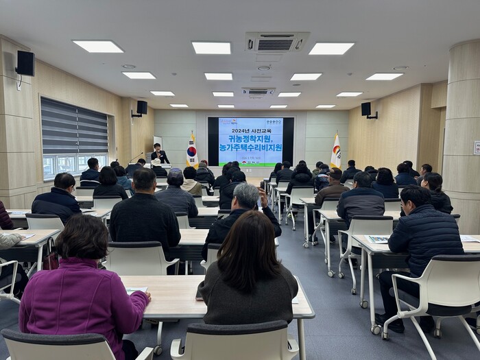 [김천=박병상 기자] 경북 김천시는 지난 7일과 8일 양일간 농업기술센터에서 귀농 분야 지원사업 선정자 54명이 참석한 가운데 원활한 사업추진을 위한 사전교육을 진행했다.