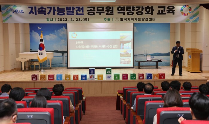 [신안=황승순 기자]신안군은 지난 28일 한국지속가능발전센터장 윤희철 강사를 초빙, 전 직원을 대상으로 신안군 지속가능발전 정책추진 방안을 위한 직무역량강화 교육을 실시했다.