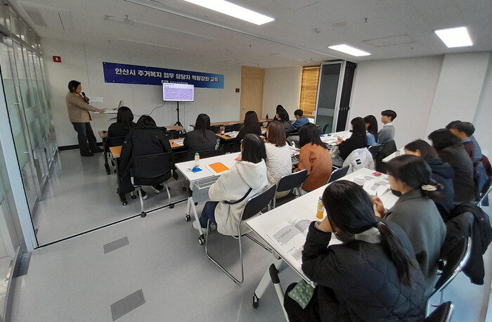 | ▲ 안산시 동 행정복지센터 주거복지 업무 담당자들 대상 ‘주거복지 업무 담당자 역량강화 교육’을 진행하고 있다 /사진제공=안산시 |