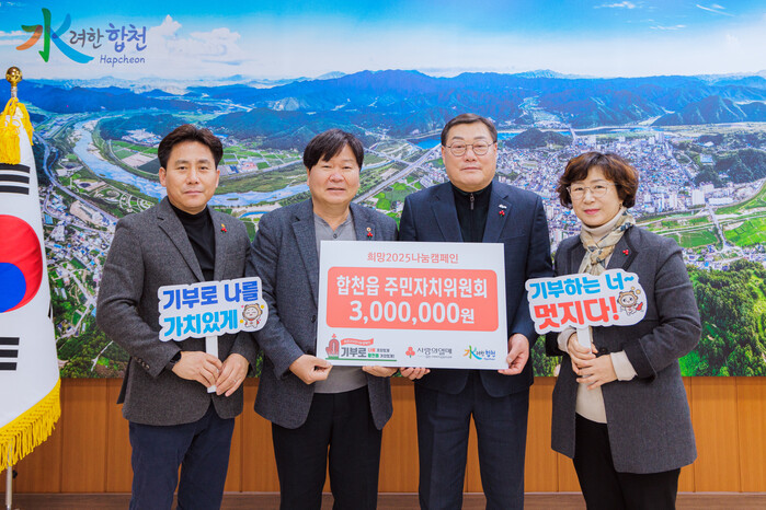 합천읍 주민자치위원회는 지난해에도 300만 원을 기탁한 데 이어 올해도 나눔의 뜻을 이어가고 있다.