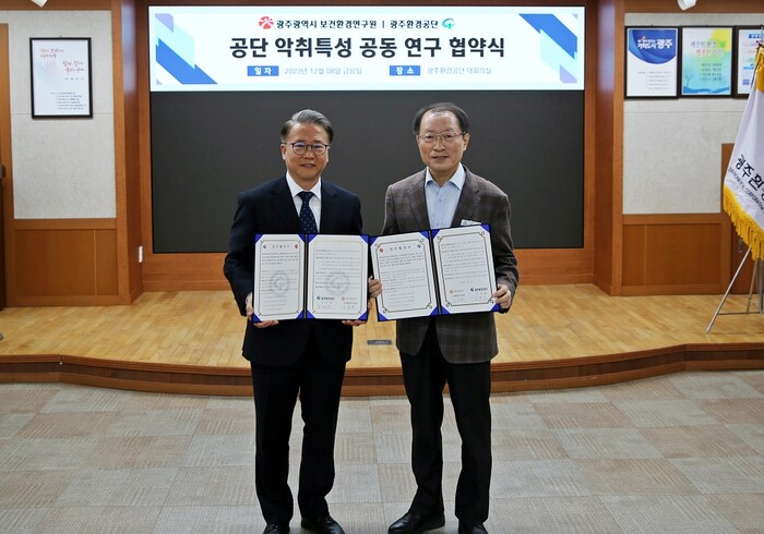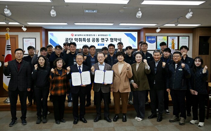 이날 오전, 광주환경공단 대회의실에서 열린 이번 협약식에는 공단 이사장과 보건환경연구원장 등 주요 관계자가 참석한 가운데 환경기초시설에서 발생하는 주요 악취 원인물질의 특성에 대한 공동연구를 상호 약속했다.