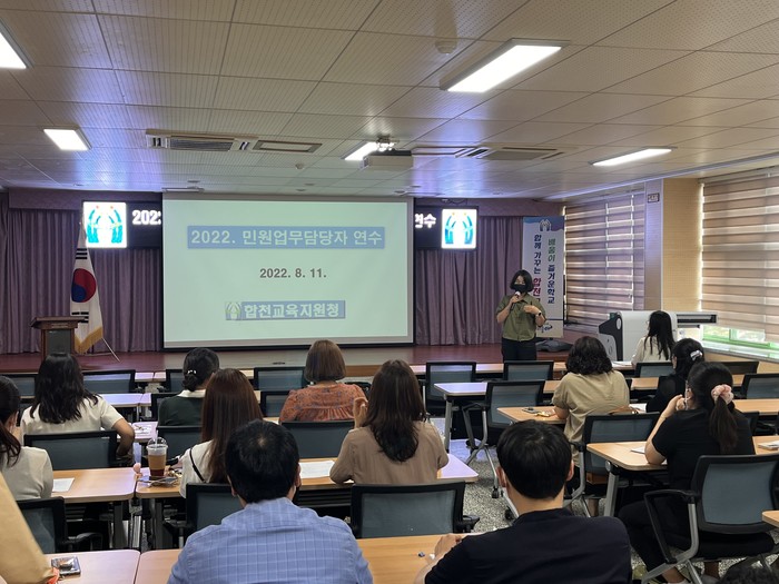 이번 연수는 업무 담당자의 전문성 강화를 통해 신속하고 정확한 민원행정서비스를 구현하고, 정보공개 서비스를 개선하고자 실시되었다. △제증명 처리 △행정정보공동이용 △국민신문고 △정보공개 △기록물 관리를 주제로 실무경험을 공유하고 관련 지식을 습득할 수 있는 시간을 가졌다. 또한 민원 담당자의 기본소양을 다루는 친절교육과 이해충돌방지법을 설명한 청렴 동영상 시청도 함께 이루어졌다.