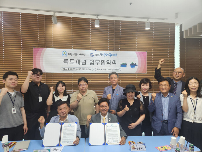 [의왕=송윤근 기자] 경기 의왕시청소년재단(이사장 김성제)은 30일, 의왕시청소년수련관에서 (사)영토지킴이 독도사랑회 의왕지회 (회장 전용복)와 ‘2025년 경기도 청소년 찾아가는 독도 디지털 체험관’ 사업의 성공적인 운영을 위한 업무협약을 체결했다.