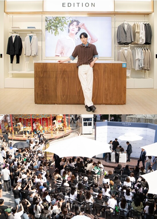 이날 행사에서 안효섭은 행사장에 브라운 카라 니트에 데님 셔츠를 레이어드하여 스타일리시한 룩을 선보였으며, 수많은 팬과 반갑게 인사를 나누며 친필 사인을 전달하는 특별한 시간을 가졌다.