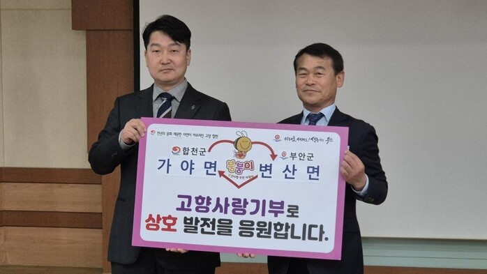 화종영 가야면장은 “지역 간 상생 발전을 위해 상호 교차 기부에 동참해준 직원들에게 깊이 감사드린다”며 “이런 상호 기부문화가 확산돼 고향사랑기부제가 더욱 활성화 되기를 기대한다”고 말했다.