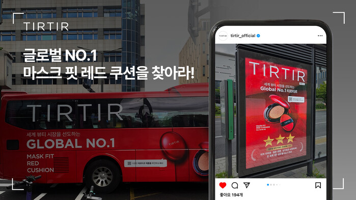 티르티르 ‘글로벌 NO.1 마스크 핏 레드 쿠션을 찾아라’ 이벤트는 버스 쉘터와 랩핑버스, 버스 광고 등 서울 시내 곳곳에서 발견할 수 있는 광고 이미지를 개인 SNS에 인증, 업로드하는 이벤트로 오는 8월 말까지 공개 게시글에 한 해 자동 응모된다. 이 이벤트는 티르티르의 공식 계정 팔로워들을 대상으로 진행되며 공식 계정(@tirtir_official)과 #티르티르 #레드쿠션을찾아라 태그를 필수로 달고 전체공개로 피드에 업로드해야 한다. 이벤트 응모자 중 10명을 선정하여 ‘마스크 핏 레드 쿠션’ 30쉐이드 중 자신의 톤에 맞는 호수를 증정할 예정이다.