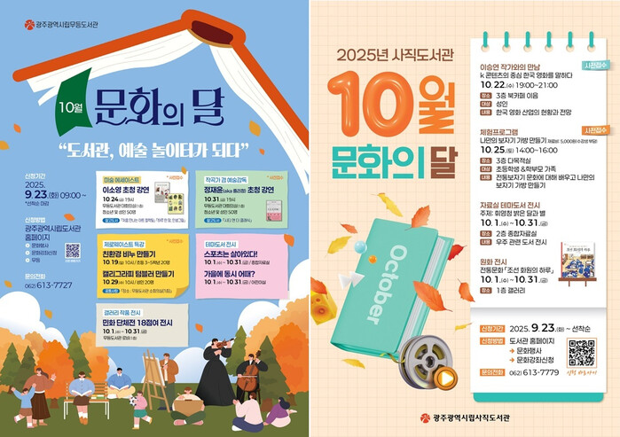 | ▲ 광주 무등, 사직도서관 10월 문화의 달 안내 포스터 / 광주광역시 제공 |