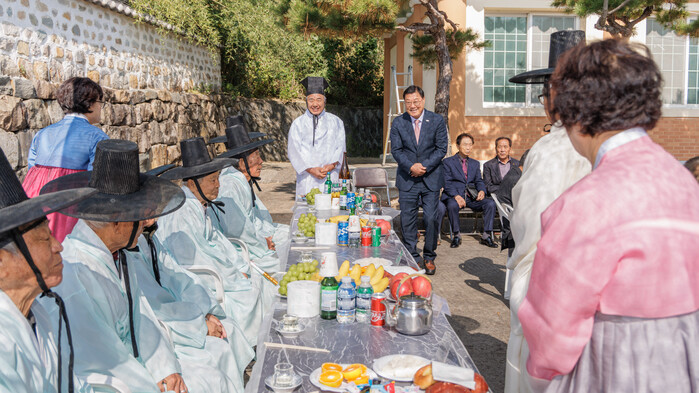 이날 행사에는 초계향교 큰어르신 일곱분을 주빈(主賓)’으로 초청하여 장수상과 선물을 증정하고 어르신들의 만수무강을 기원하였다.