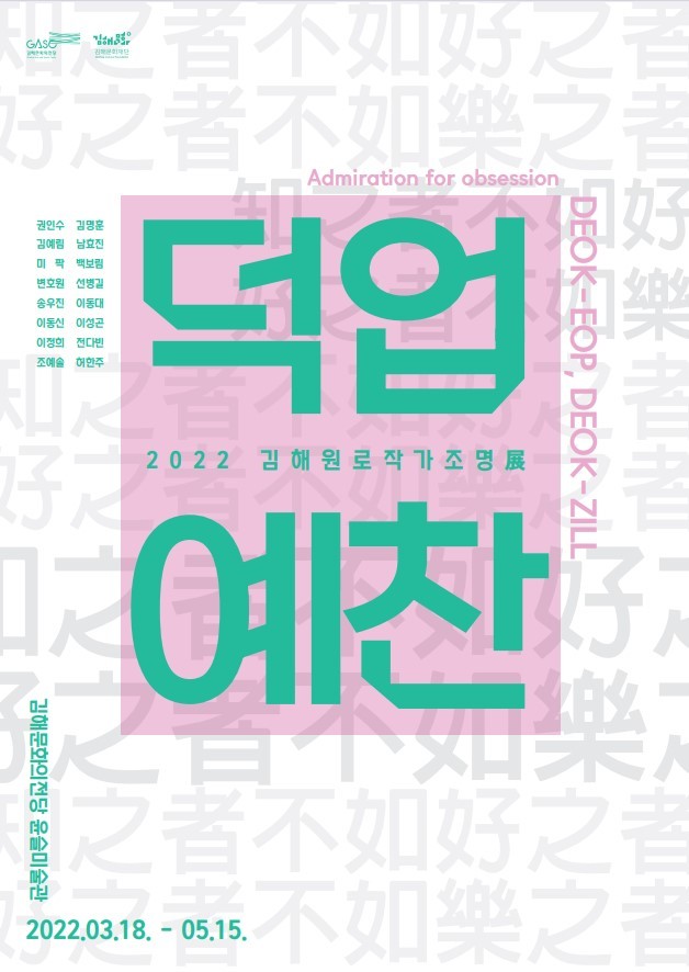 김해문화재단은 3월18일부터 5월15일까지 김해문화의전당 윤슬미술관에서 <덕업예찬> 2022 김해원로작가조명전을 개최한다. 서예 서각 문인화 서양화 한국화 설치미술 영상 등 분야에서 원로작가 9명과 청년작가 7명이 함께 참가한다.