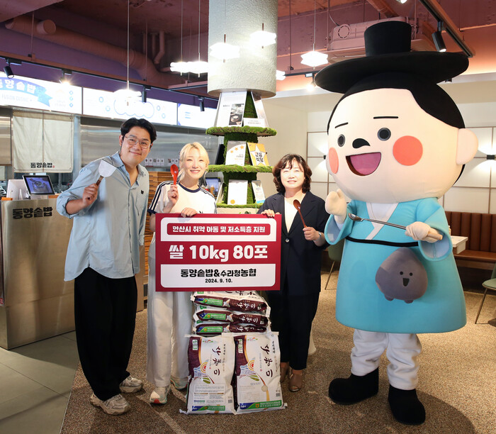 단원구에 위치한 솥밥 전문 브랜드 동양솥밥(주)(대표 이민규)는 이번 기부를 위해 인기 먹방 유튜버 ‘히밥’과 콘텐츠를 진행했다. 히밥이 솥밥 1인분을 먹을 때마다 쌀 10kg 10포를 기부하는 방식이다. 이번 콘텐츠를 통해 총 80포의 쌀(동양솥밥 50포, 수라청농협 30포)이 모였다.
