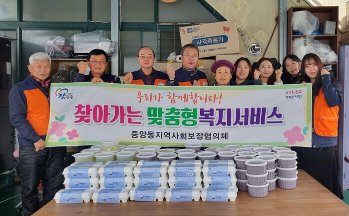 진주시 중앙동 지역사회보장협의체(위원장 하경자)는 20일 동짓날을 맞아 사랑의 동지 팥죽 나눔 행사를 열었다.