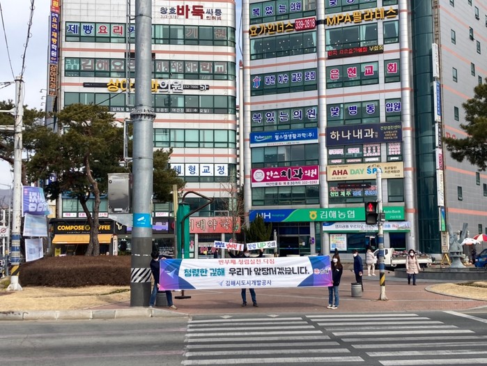 김해시 도시개발공사는 청렴도 향상을 위해 지난 7일 구산육거리,헌혈행사장 등 에서 청렴 UP가두 캠페인을 실시했다.