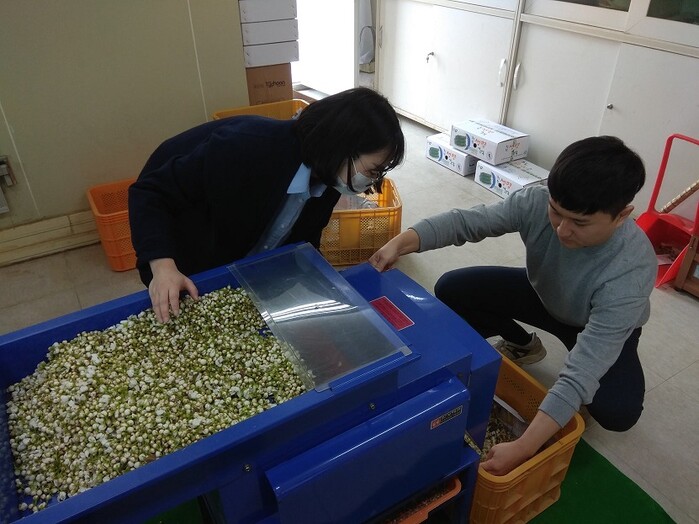 농업기술센터는 인공수분을 희망하는 과수농가가 꽃을 채취해 오면, 불순물을 제거한 뒤 꽃가루를 정선해 농가에 공급해준다.