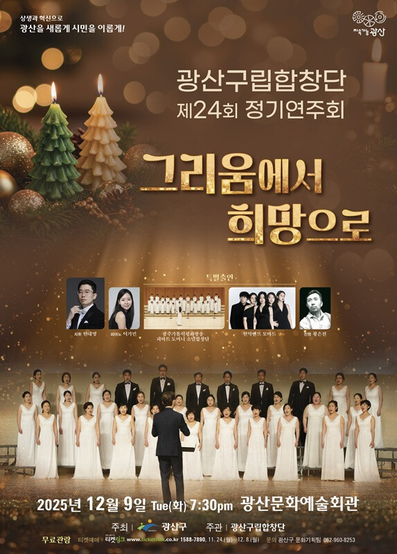 이번 무대는 광산구립합창단뿐만 아니라 맑고 투명한 보이소프라노를 자랑하는 파이트도미니 소년합창단, 현악밴드 모마드 등 특별한 출연진들과 함께 다채로운 음악 무대를 선보일 예정이다.