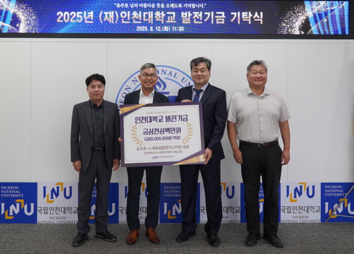 이인재 총장은 “오랜 시간 인천대학교의 발전을 위해 헌신해 준 유주호 대표에게 깊이 감사드린다”며 “소중한 기부금은 대학의 미래를 위해 뜻깊게 사용하겠다”고 말했다.