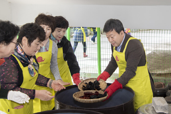 이날 행사는 우리의 전통음식을 지키고자 하는 슬로푸드의 의미와 가치를 전달하고 나눔을 실천하기 위해 마련됐다. 숙성된 된장과 간장은 관내 초·중·고등학교 학생들에게 전달할 예정이다.
