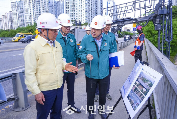 | ▲ 강기정 광주광역시장, 지난 5월20일 오후 광산구 하남대교를 찾아 광주시 민관합동점검반과 함께 ‘2025년 집중안전점검’ 실시 자료사진./광주광역시 제공 |