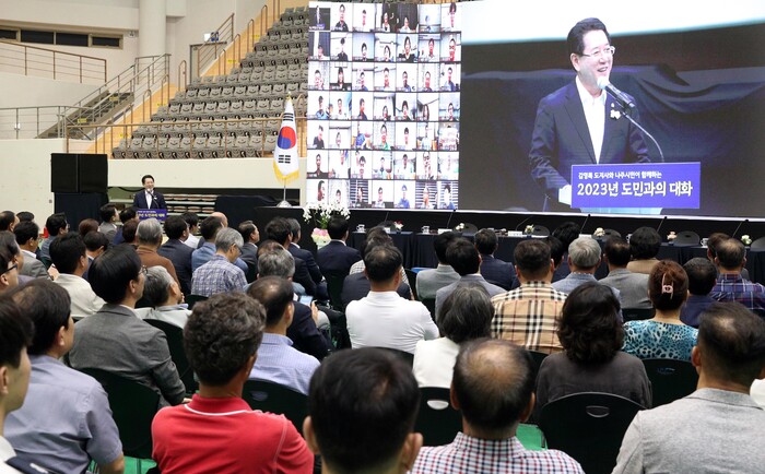 도민과의 대화에는 김 지사를 비롯해 윤병태 나주시장와 이상만 나주시의회 의장, 최명수·이재태·김호진 도의원, 박상훈 경찰서장, 박연호 소방서장, 이주희 동신대총장, 박진호 켄텍 부총장, 서정윤 노인회장 등 220여 명이 온·오프라인을 통해 참여했다.