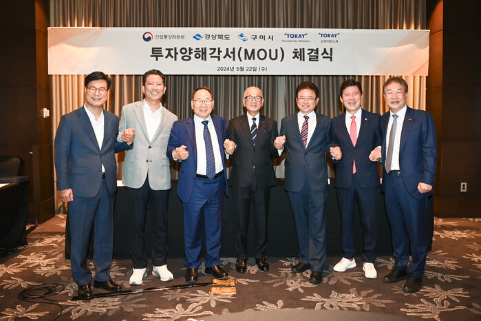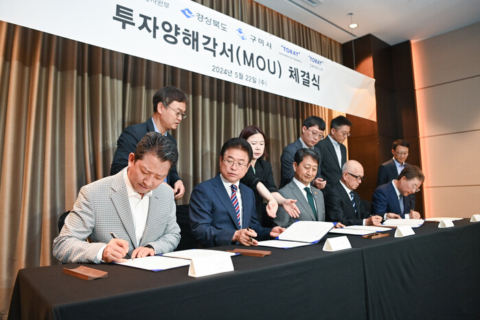 [구미=박병상 기자] 경북 구미시는 지난 22일 서울 영등포 소재 콘래드 호텔에서 도레이와 구미국가산단 투자를 위한 양해각서(MOU)를 체결했다.