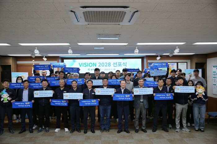 [광주=정찬남 기자] 광주환경공단(이사장 김병수)은 5월 2일 전 임・직원이 참석한 가운데 노사 공동 비전 2028 선포식 및 기념 식수 행사를 갖고 새로운 도약을 다짐했다.