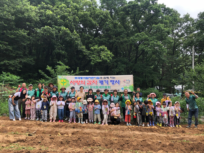 또한 시립부곡어린이집 6~7세 원아 30명은 새마을회원의 안내와 지도를 받아 감자캐기 체험을 진행했다. 아이들은 직접 흙을 만지고 감자를 찾아보는 시간을 통해 농작물 수확의 기쁨과 이웃을 위한 나눔의 의미를 배울 수 있었다.