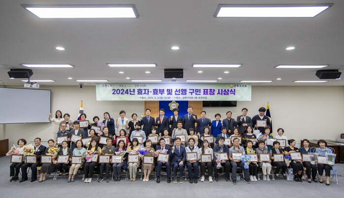 [시민일보 = 여영준 기자] 서울 강북구의회(의장 최치효)가 최근 의회 3층 본회의장에서 2024년 효자·효부 및 선행자 51명에 대한 표창 수여식을 개최했다.