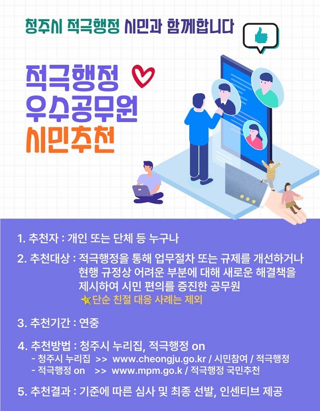 청주시 누리집 적극행정 코너를 통해 시민도 추천할 수 있다.