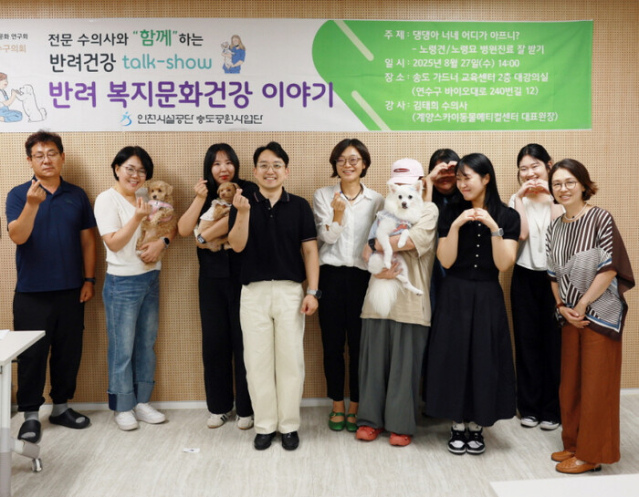 연수구의회 의원 연구단체 함께 반려 문화 연구회는 27일 인천경제자유구역청 가드너교육센터에서 인천시설관리공단과 네 번째 반려 건강 토크쇼를 개최했다고 밝혔다.