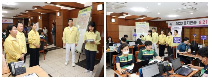 [시민일보 = 여영준 기자] 서울 중구의회 국민의힘 의원들이 지난 21일 2023 을지연습이 실시 중인 중구청 지하 합동상황실을 방문했다.